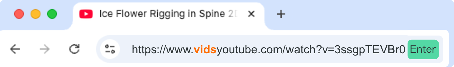 Insert "vids" right before "youtube.com" in the address bar to initiate the download.